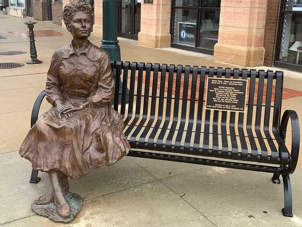 Fans of classic TV will instantly recognize Marion Ross as “Mrs. C” from Happy Days, while a younger generation may know her from Gilmore Girls. A Minnesota native, Marion Ross is honored in her hometown of Albert Lea, Minnesota, with a beautifully crafted statue right outside the Marion Ross Performing Arts Center.