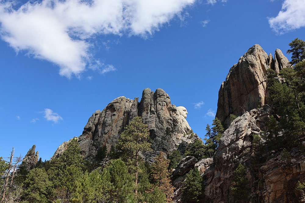 We arrived on a beautiful Monday morning, with a few clouds scattered across the sky that only enhanced the view of the monument. Unlike my first visit, this time I had the opportunity to explore the area in depth. In addition to taking in the view from the main observation deck, we hiked the scenic Presidential Trail, which offers several unique vantage points of the carving and surrounding Black Hills.