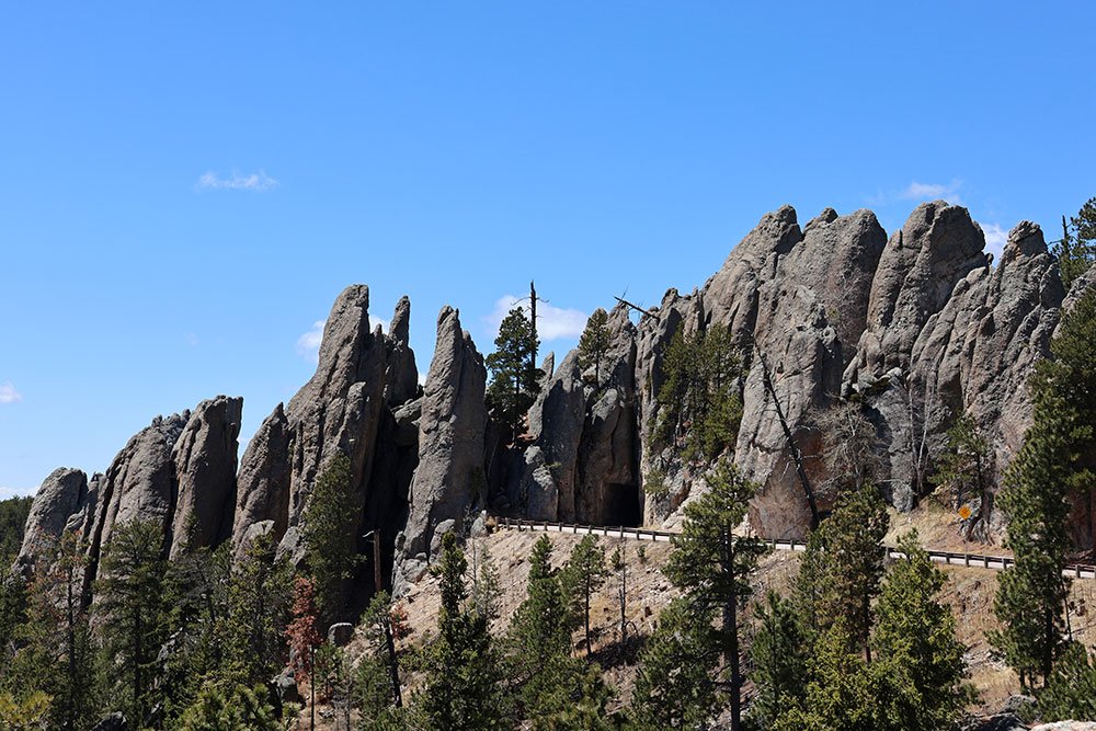 Our first route through the park took us along the iconic Needles Highway (SD Highway 87). This scenic byway winds through towering granite rock formations, narrow one-lane tunnels, and sharp curves that make for an unforgettable drive. It felt like our first real driving test in the West.