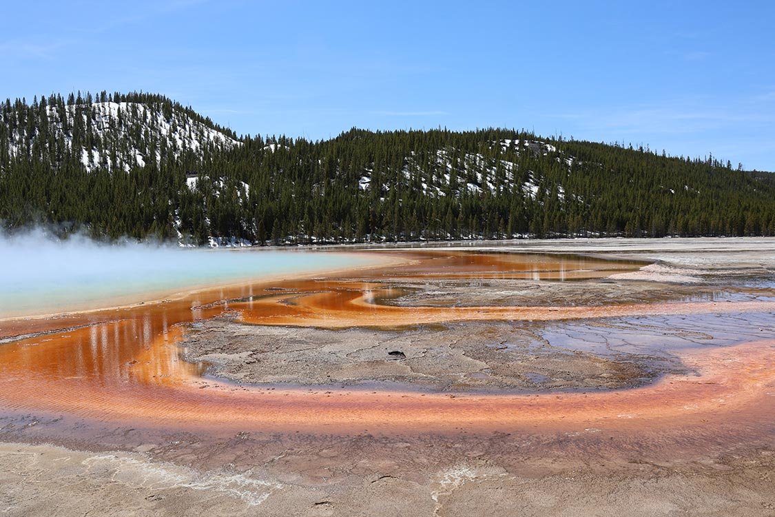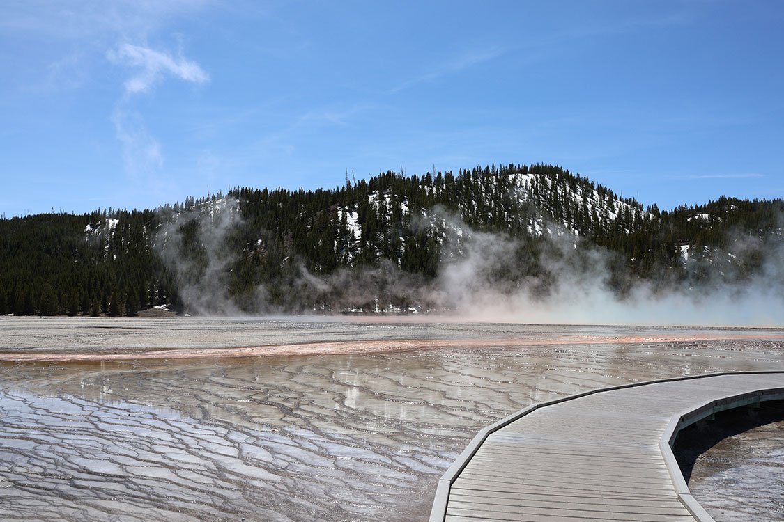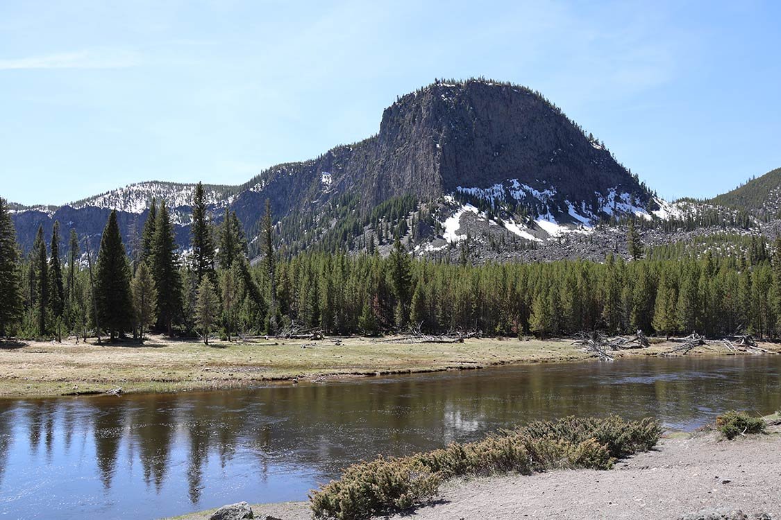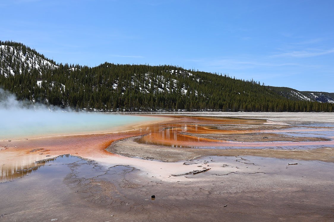 In the summer months, it’s a quick and scenic drive from Grand Teton National Park to Yellowstone National Park, with the parks connected directly by the John D. Rockefeller Jr. Memorial Parkway. However, because our visit came before Memorial Day, that route was still closed for the season. Instead, our journey took us on a longer, but equally beautiful, drive through a mountain pass in Wyoming, briefly into Idaho, then up through Montana before re-entering Wyoming via the West Entrance to Yellowstone in West Yellowstone.