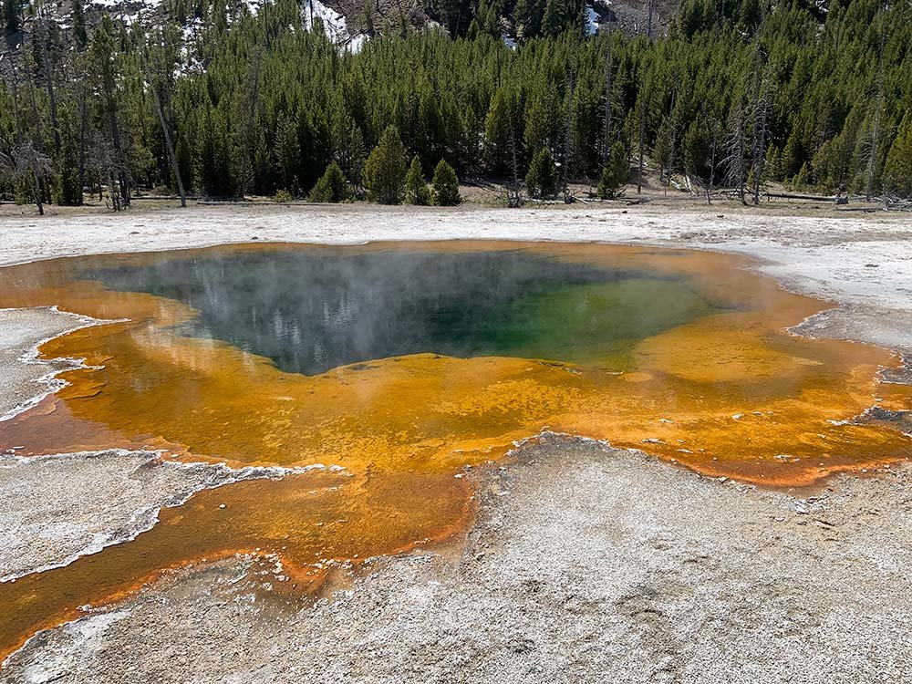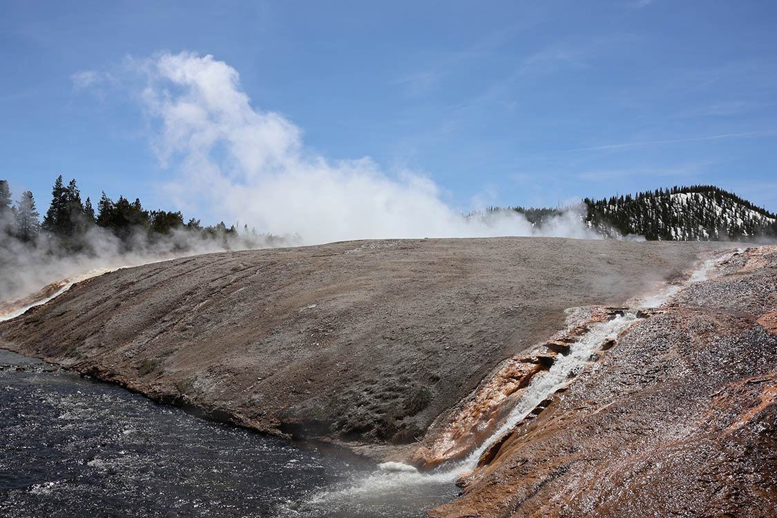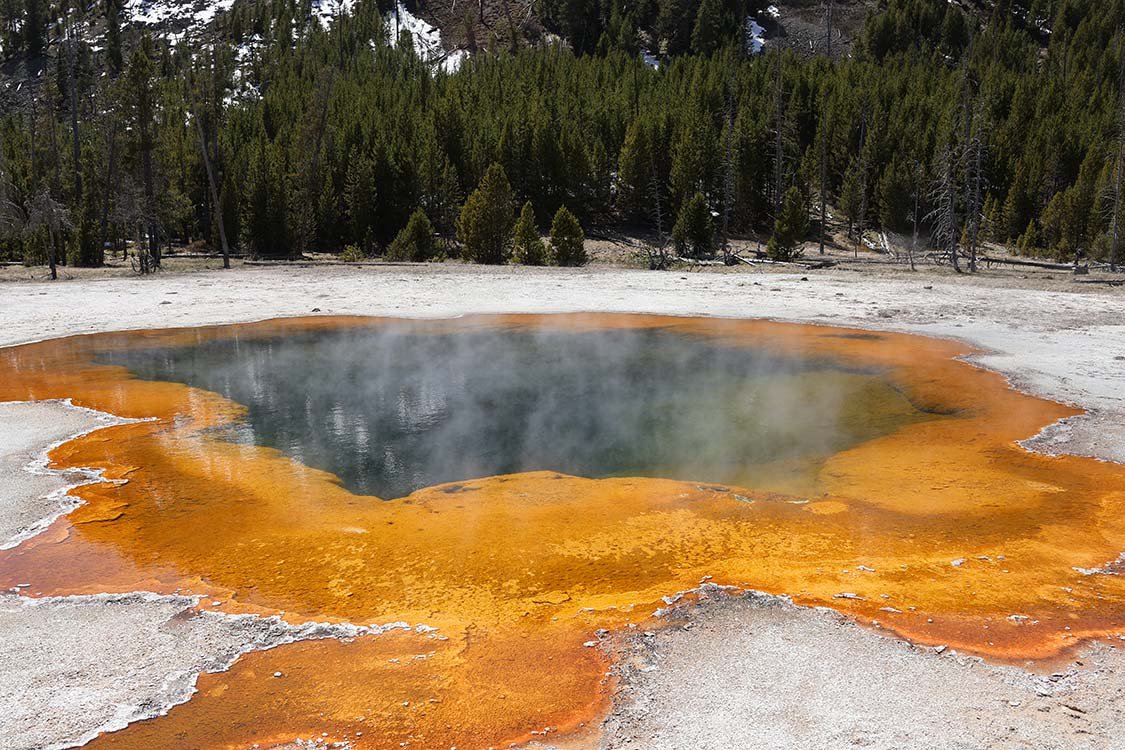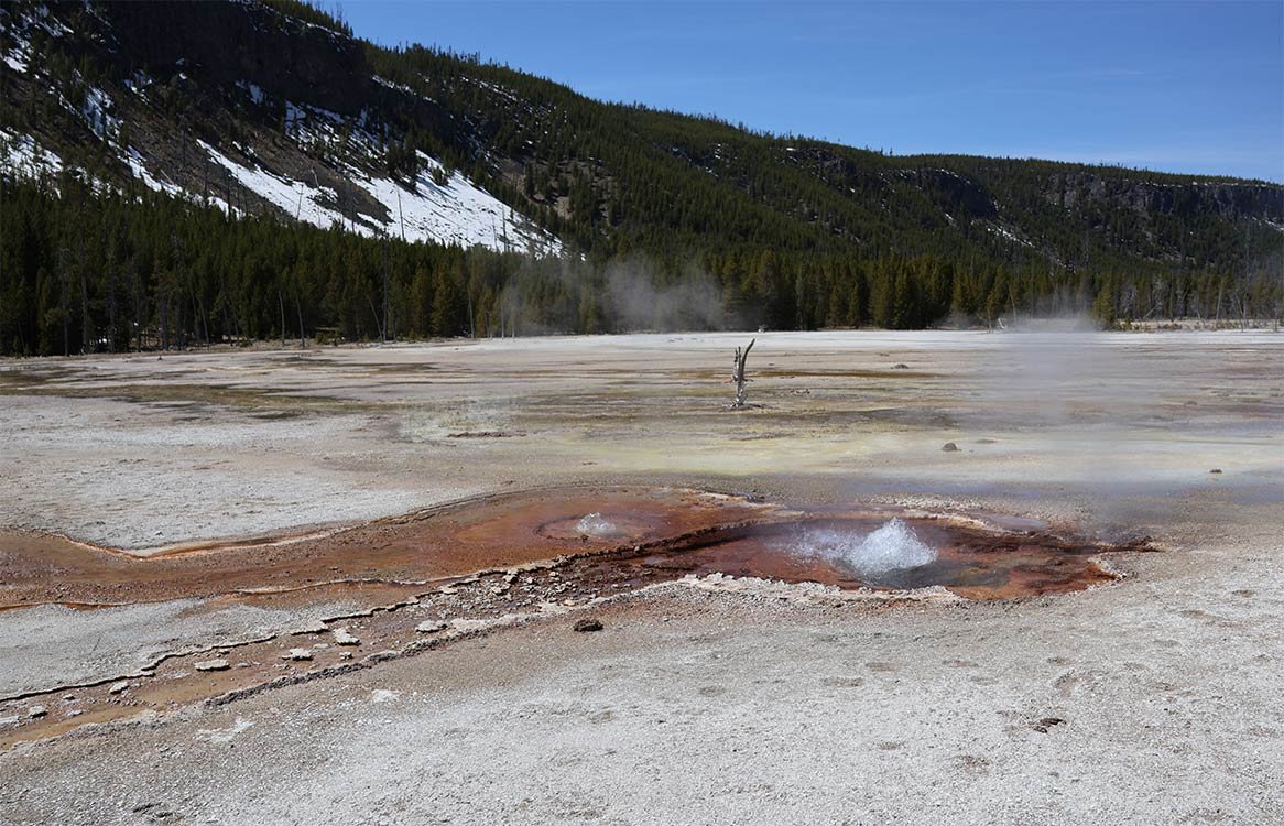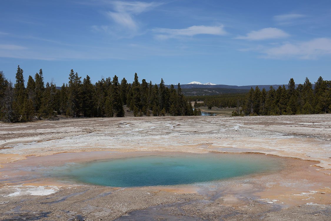 Our final destination for the day was the Old Faithful Snow Lodge, but getting there was just part of the adventure. Entering through Yellowstone’s West Entrance, we made it our mission to explore every geyser basin, mudpot, and hot spring between the gate and Old Faithful. The drive took several hours, not because of distance, but because there was so much to see along the way.