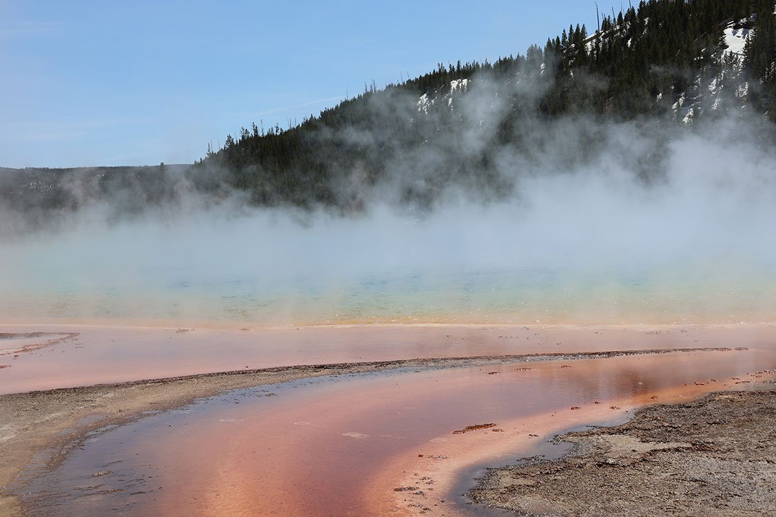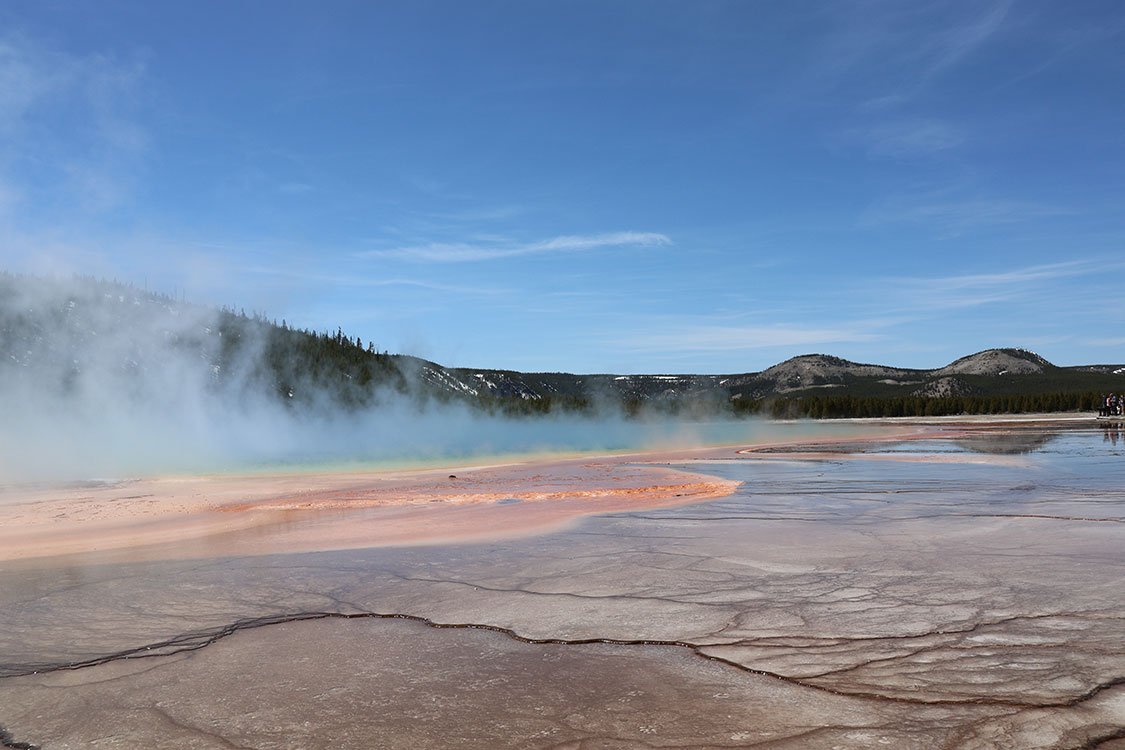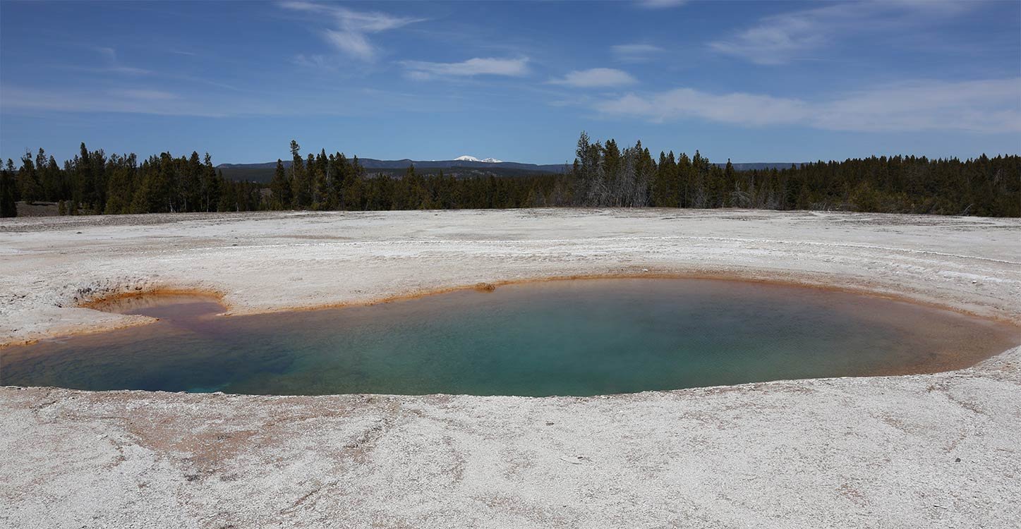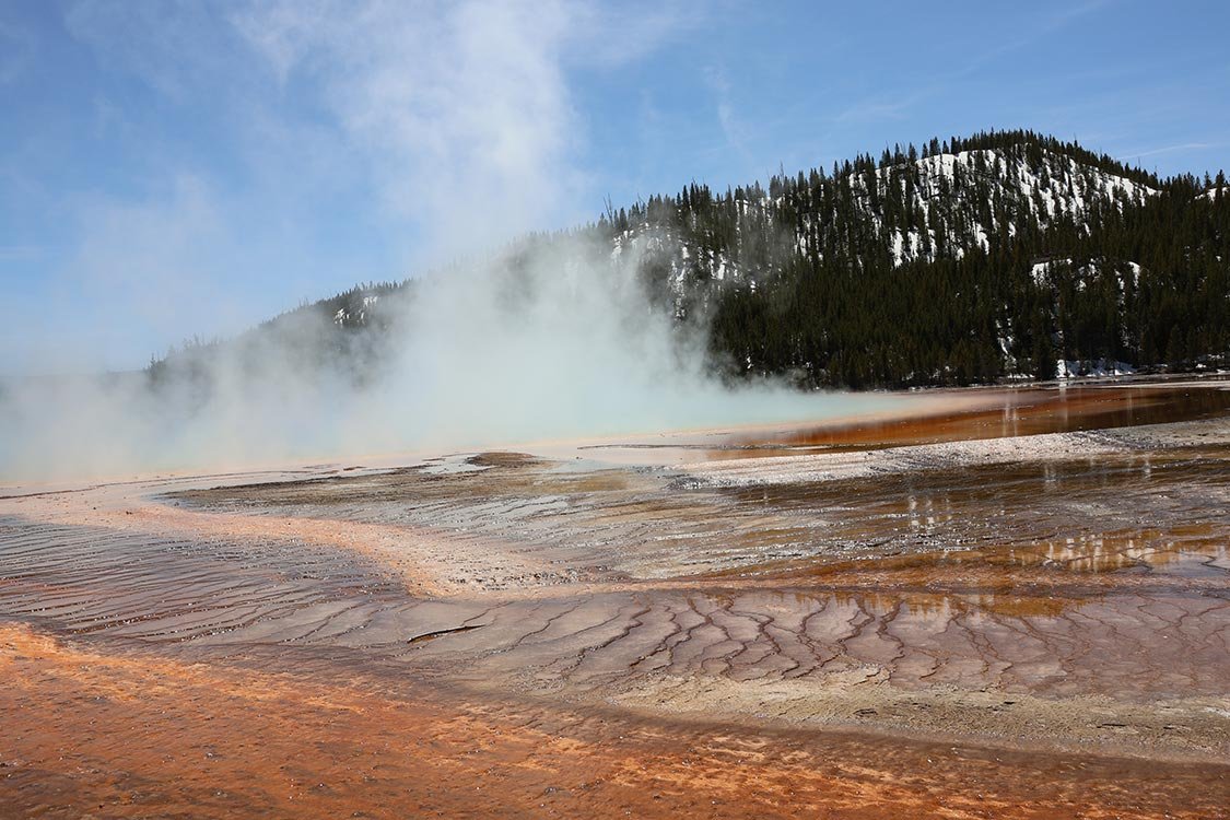 Our final destination for the day was the Old Faithful Snow Lodge, but getting there was just part of the adventure. Entering through Yellowstone’s West Entrance, we made it our mission to explore every geyser basin, mudpot, and hot spring between the gate and Old Faithful. The drive took several hours, not because of distance, but because there was so much to see along the way.