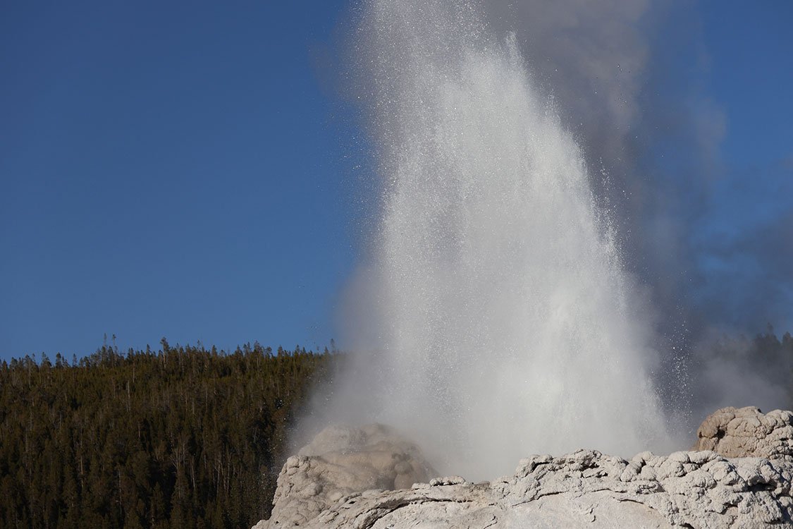 After checking in at the Snow Lodge, we walked over to catch our first eruption of Old Faithful for the first of at least ten we would witness during our stay. One of the evening highlights was watching Castle Geyser erupt for nearly half an hour, sending steam and water skyward against the fading light. It was the perfect introduction to the geothermal magic of Yellowstone National Park.