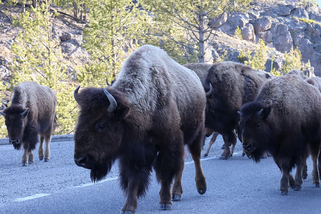 We got an early start, aiming to make our way to the other side of Yellowstone National Park to the Lamar Valley. With several roads still closed due to lingering winter snow closures, we knew the drive would take longer than usual. What we didn’t expect was a delay caused by something uniquely Yellowstone, a bison parade.