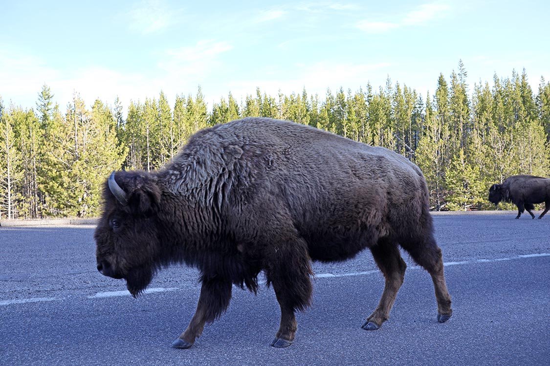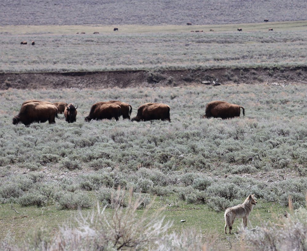Earlier in the day, a park ranger had shared some history with us about the reintroduction of wolves to Yellowstone in 1995. Despite resistance from some ranchers, the move was made to restore balance to the ecosystem, which had been impacted by overgrazing from unchecked elk and bison populations. He even mentioned how, in the past, bison would wander right through the park's front gates during harsh winters in search of food.