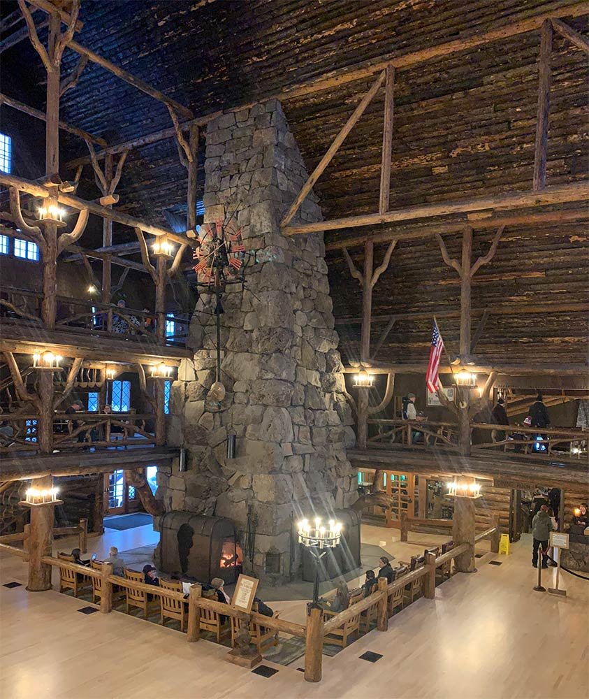 While staying at the Old Faithful Snow Lodge, I couldn’t miss the chance to visit its more famous neighbor, the Old Faithful Inn, one of the most iconic and historic lodges in Yellowstone National Park. I was curious to see if it truly had that classic old western lodge charm, and it absolutely delivered.