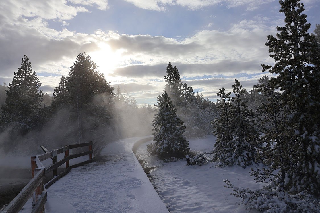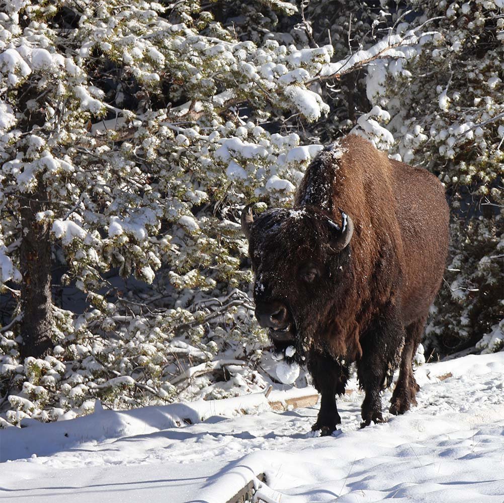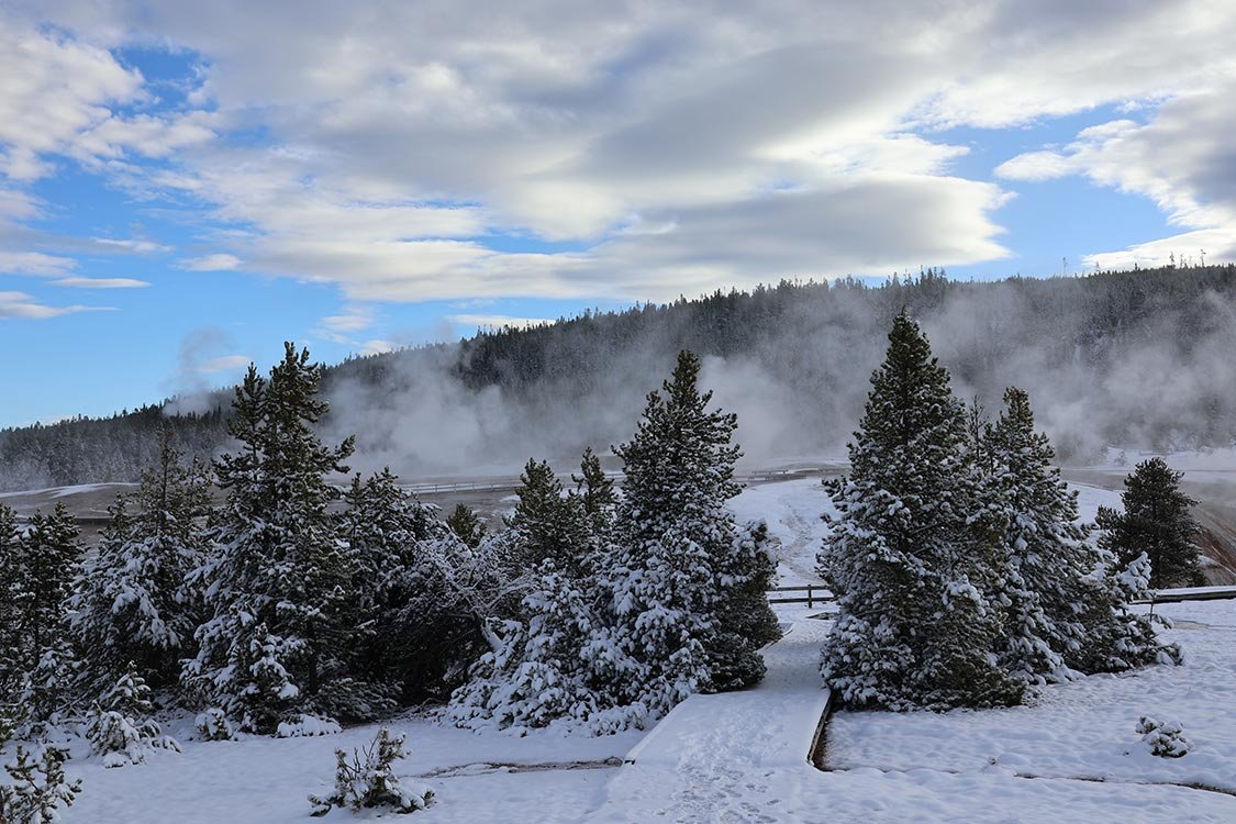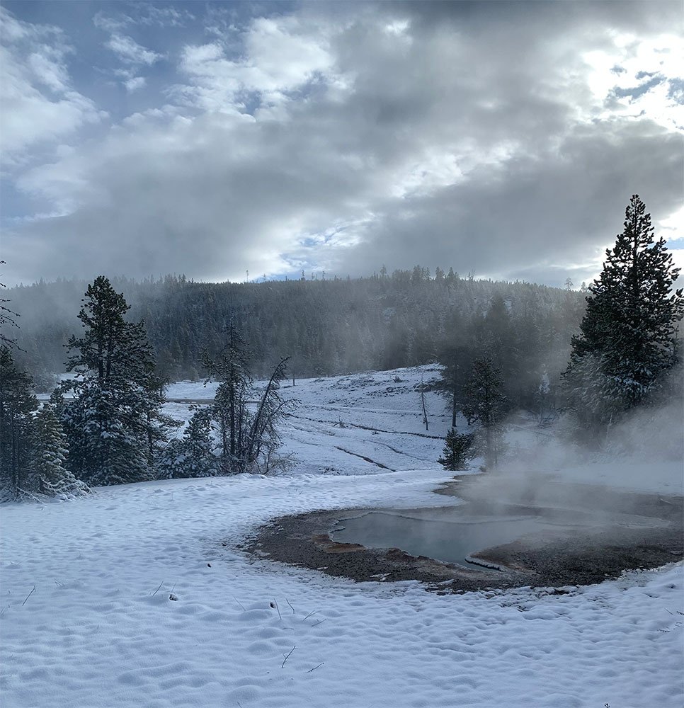 Everyone should have the chance to experience Yellowstone National Park in winter. I was lucky enough to do just that, even though it was early May. I stepped out for an early morning walk and was greeted by several inches of fresh snow, turning the landscape into a winter wonderland in Spring. The trees, trails, and hillsides glistened under a pristine white blanket, giving Yellowstone a whole new kind of shine.
