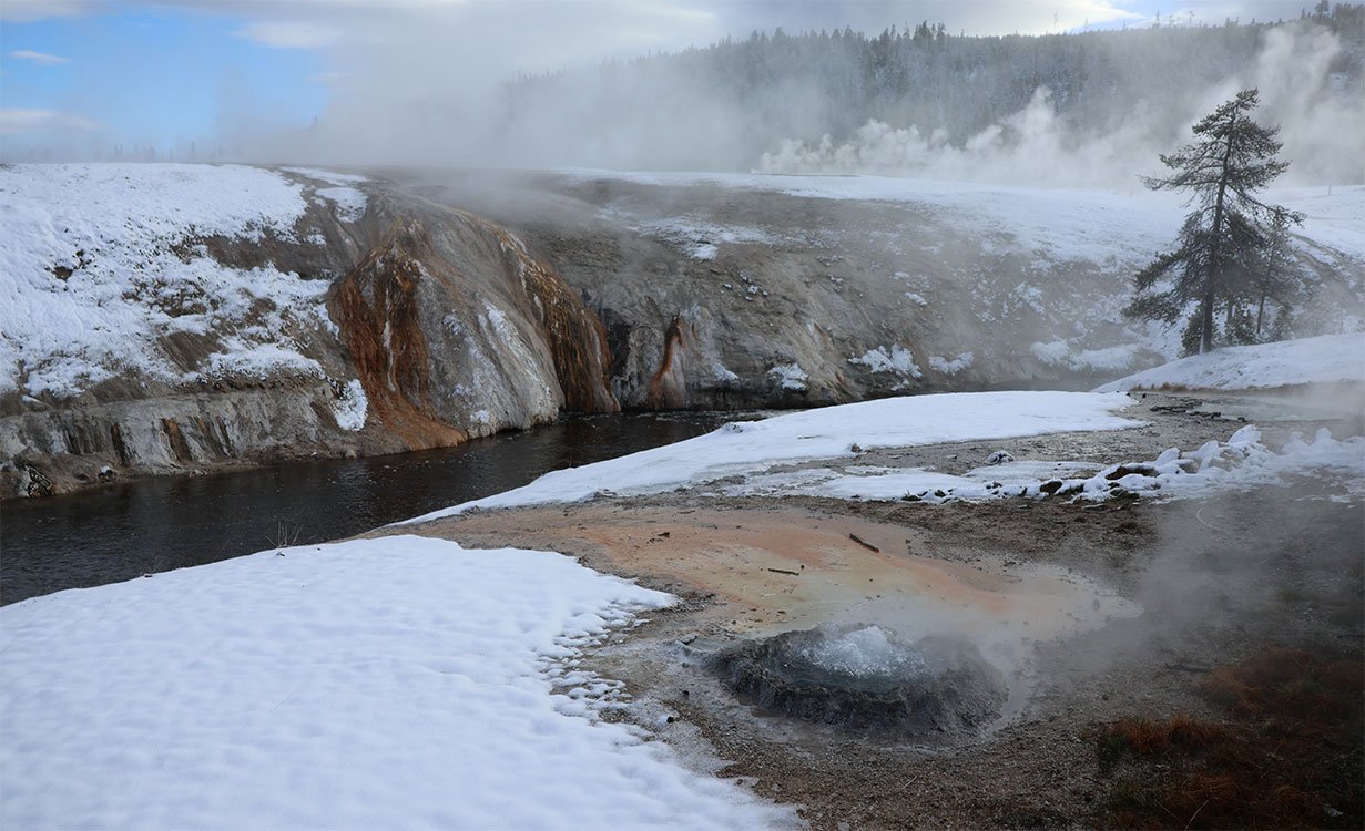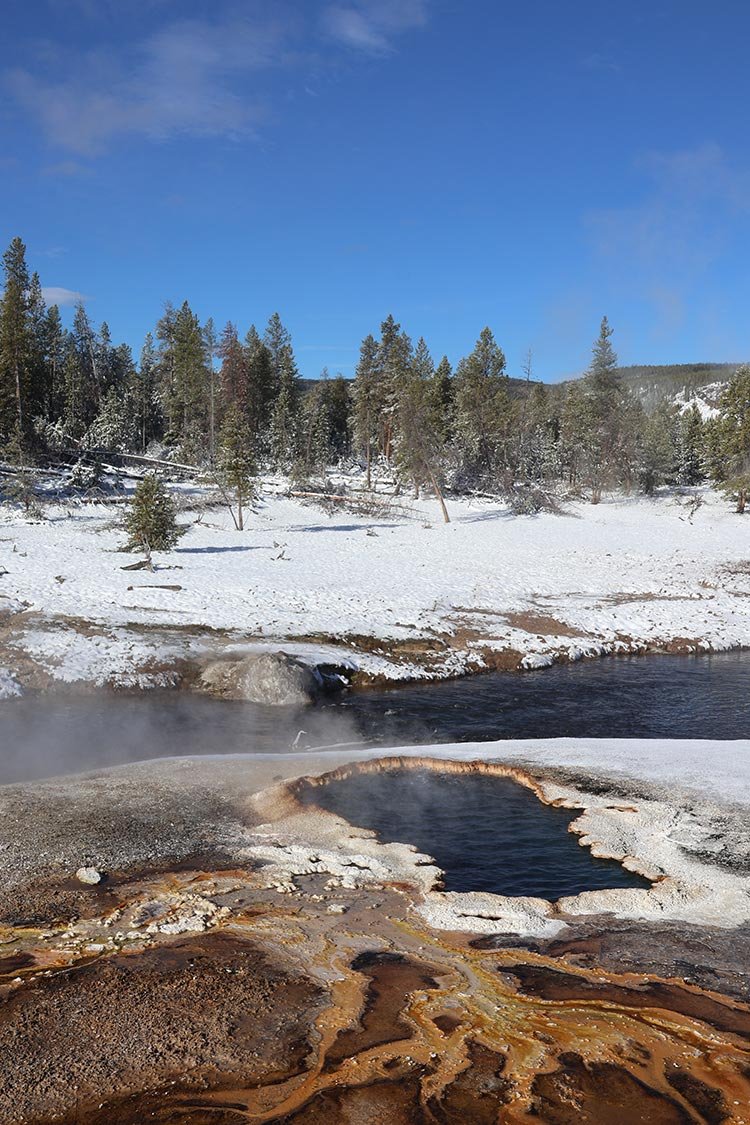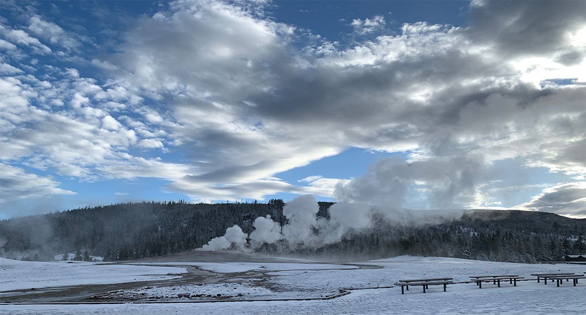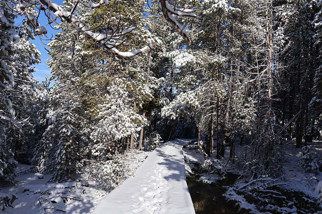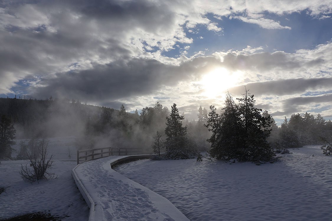 Everyone should have the chance to experience Yellowstone National Park in winter. I was lucky enough to do just that, even though it was early May. I stepped out for an early morning walk and was greeted by several inches of fresh snow, turning the landscape into a winter wonderland in Spring. The trees, trails, and hillsides glistened under a pristine white blanket, giving Yellowstone a whole new kind of shine.