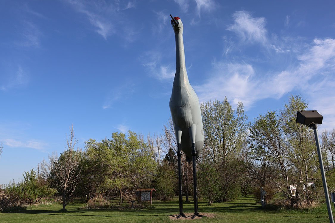 While not as towering as the World’s Largest Holstein Cow or as prominently perched, the small town of Steele, North Dakota is home to a unique roadside attraction the World’s Largest Sandhill Crane, affectionately named Sandy. Standing approximately 40 feet tall, Sandy was built to honor the region’s connection to birdwatching and the migratory patterns of sandhill cranes that pass through the area.