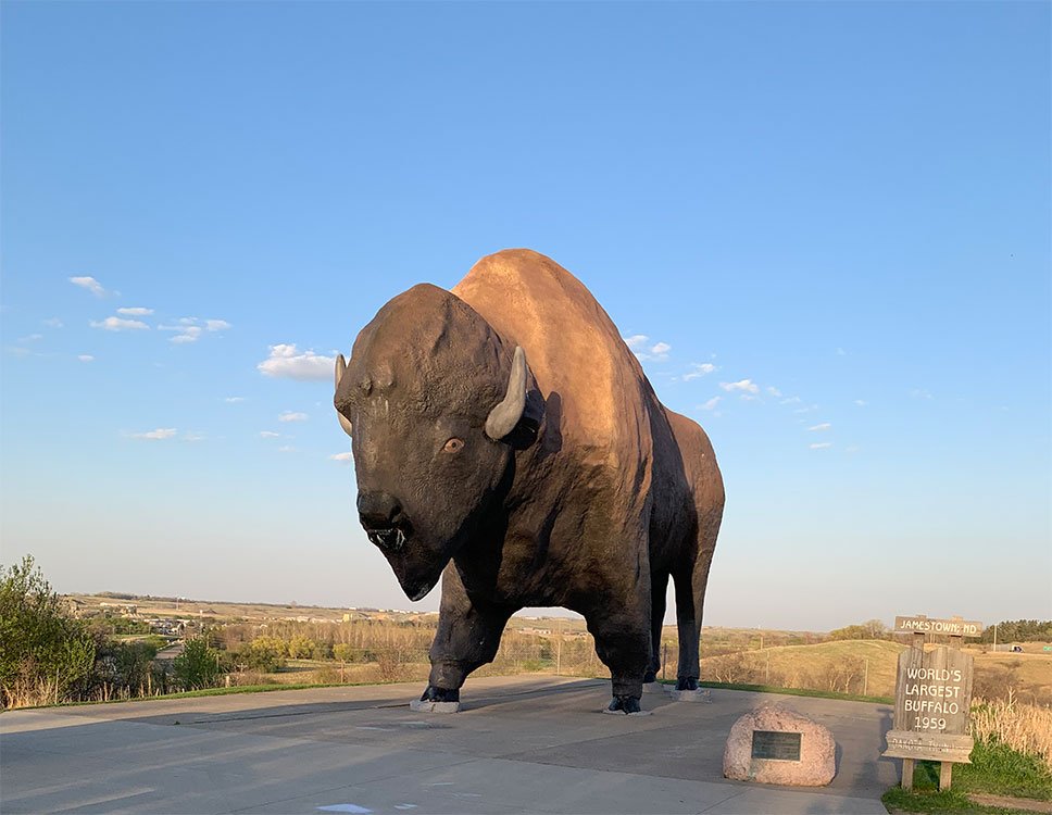 After checking into our hotel in Jamestown, North Dakota, we capped off the day with a visit to one of the state’s most iconic roadside attractions, the World’s Largest Buffalo, affectionately known as Dakota Thunder.