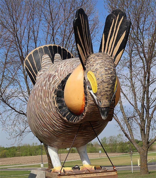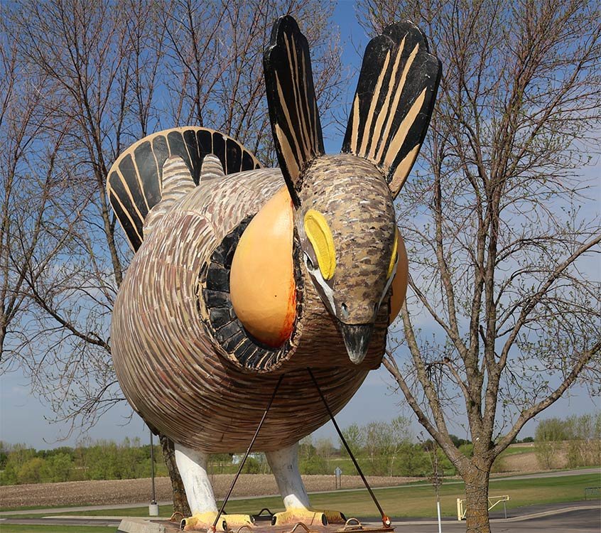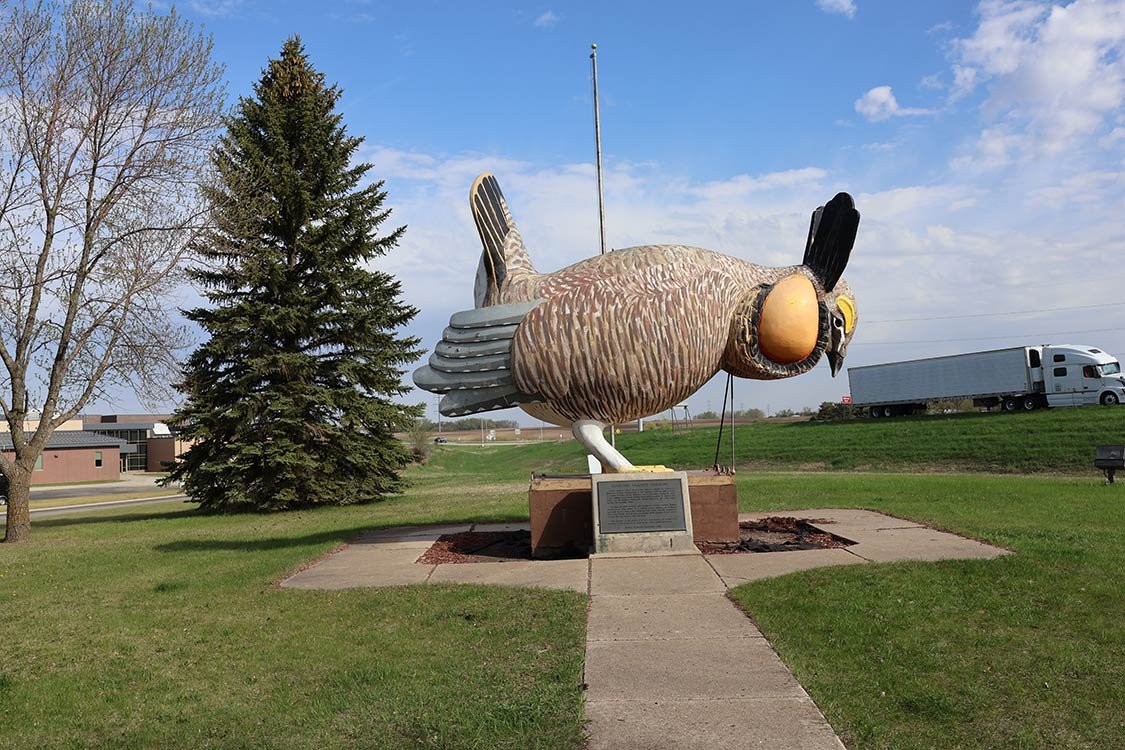On Friday we continued our theme of visiting "The World's Largest" as we entered back into Minnesota where we previously saw the Jolly Green Giant. First up was the World's Largest Prairie Chicken in Rothsay, Minnesota, the prairie chicken capital of Minnesota. The prairie chicken statue reaches 13 feet high, 18 feet long and weighs 9,000 pounds.