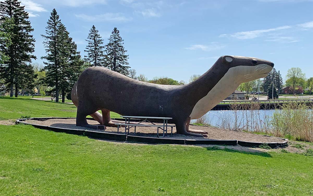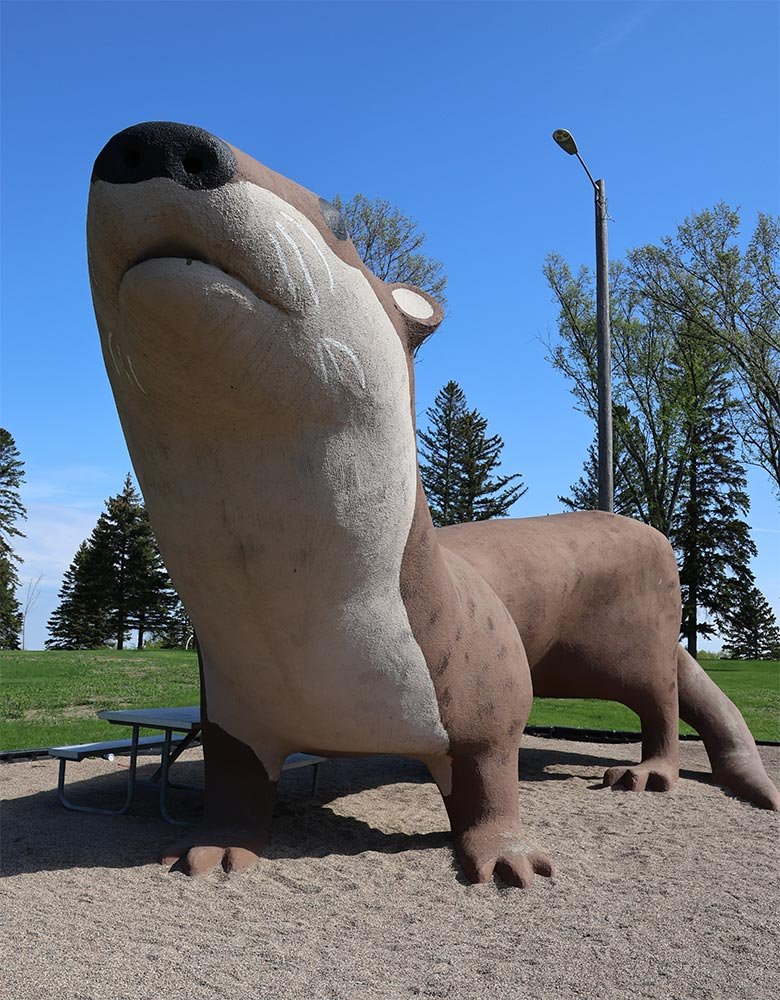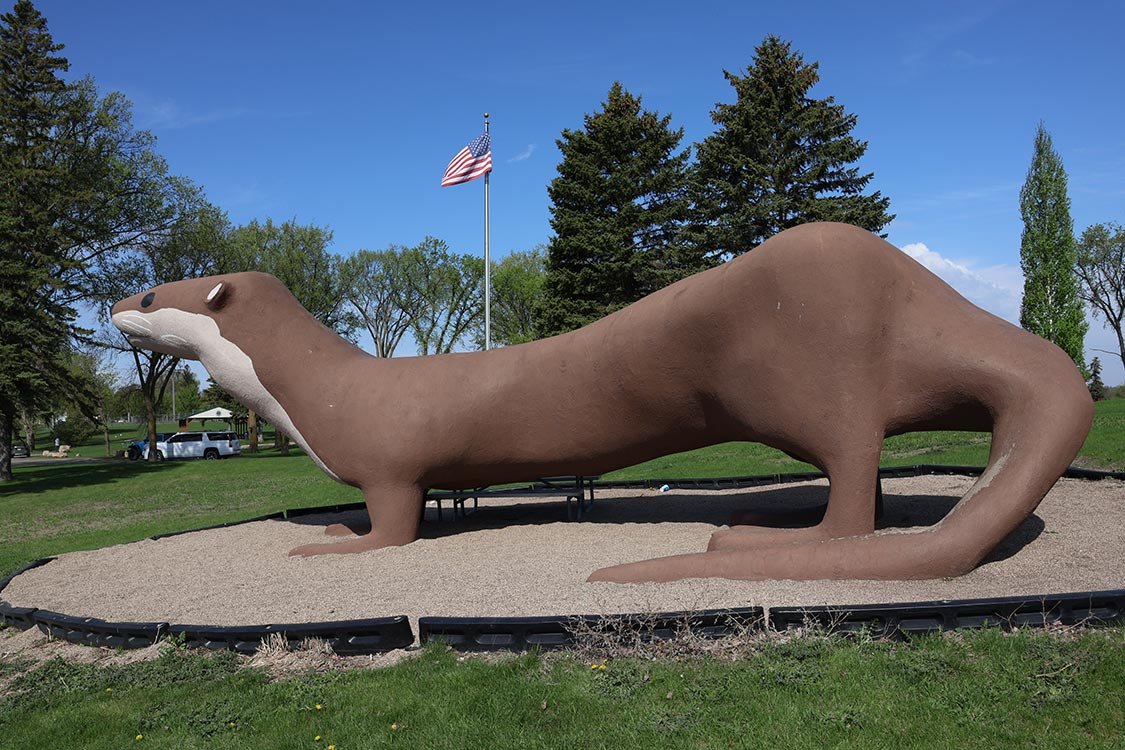 Sometimes the best roadside stops are the ones you didn’t plan. While driving along I-94, we saw a sign for the World's Largest Otter and decided to make a quick detour to Fergus Falls, Minnesota. Just ten minutes off the interstate, we found Otto the Otter standing tall in Grotto Park, overlooking a peaceful lake where geese floated by. The spontaneous stop was well worth it and added another fun entry to our list of giant roadside attractions.