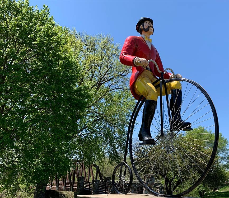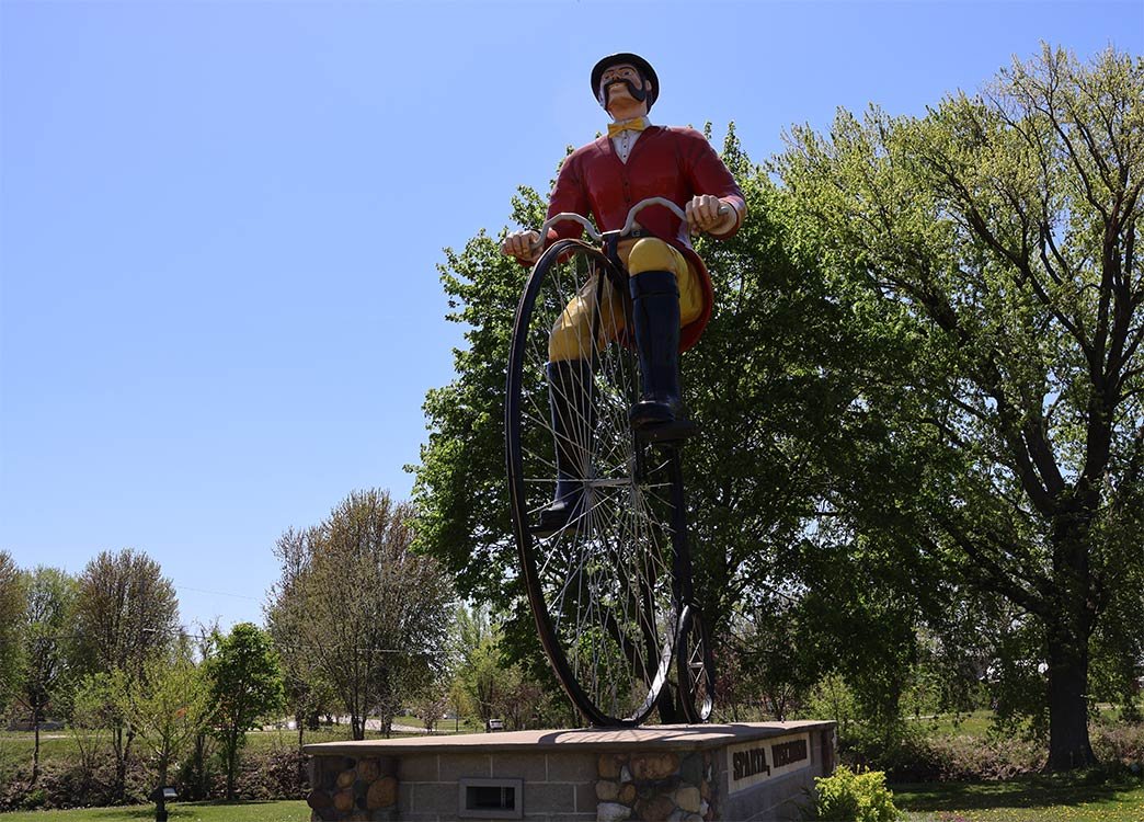 Nicknamed Ben, this towering cyclist sculpture sits atop a giant 1890s-era bicycle and stands an impressive 32 feet tall. Dressed in a colorful outfit, Ben greets visitors entering Sparta. If you're traveling through western Wisconsin or following I-90, this massive tribute to biking culture is a must-see stop.