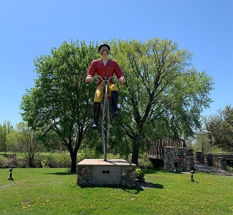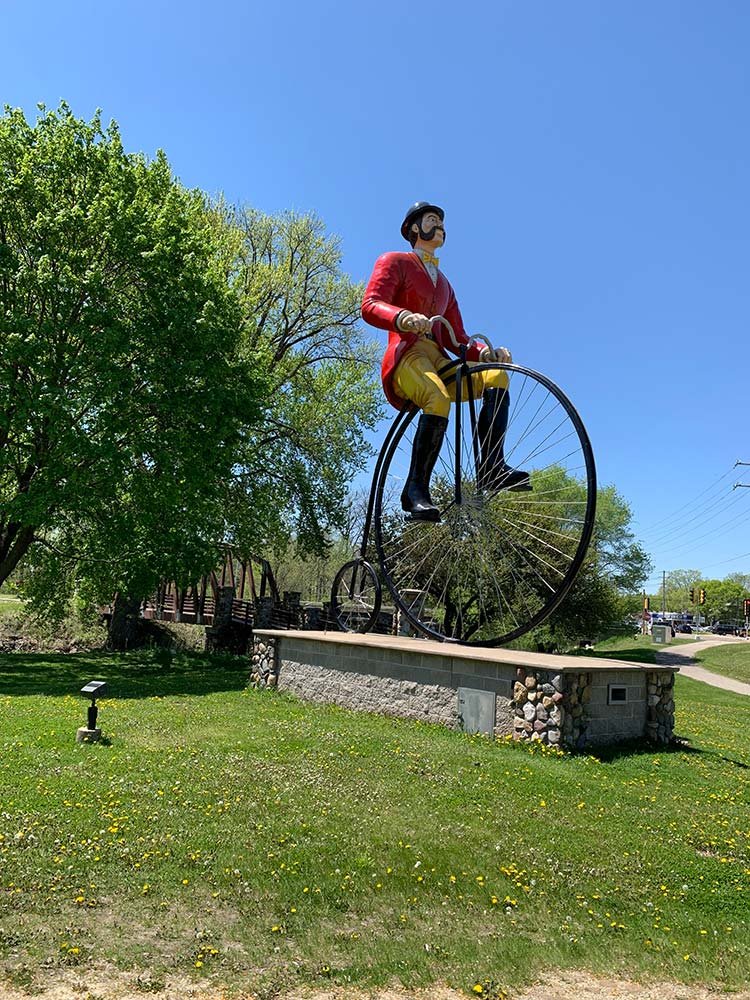 As we began the final stretch of our road trip on Saturday afternoon, Wisconsin made sure it wasn’t left out of our “World’s Largest” theme. In the town of Sparta, Wisconsin which is proudly known as the Bicycling Capital of America, we stumbled upon the World’s Largest Bicyclist.