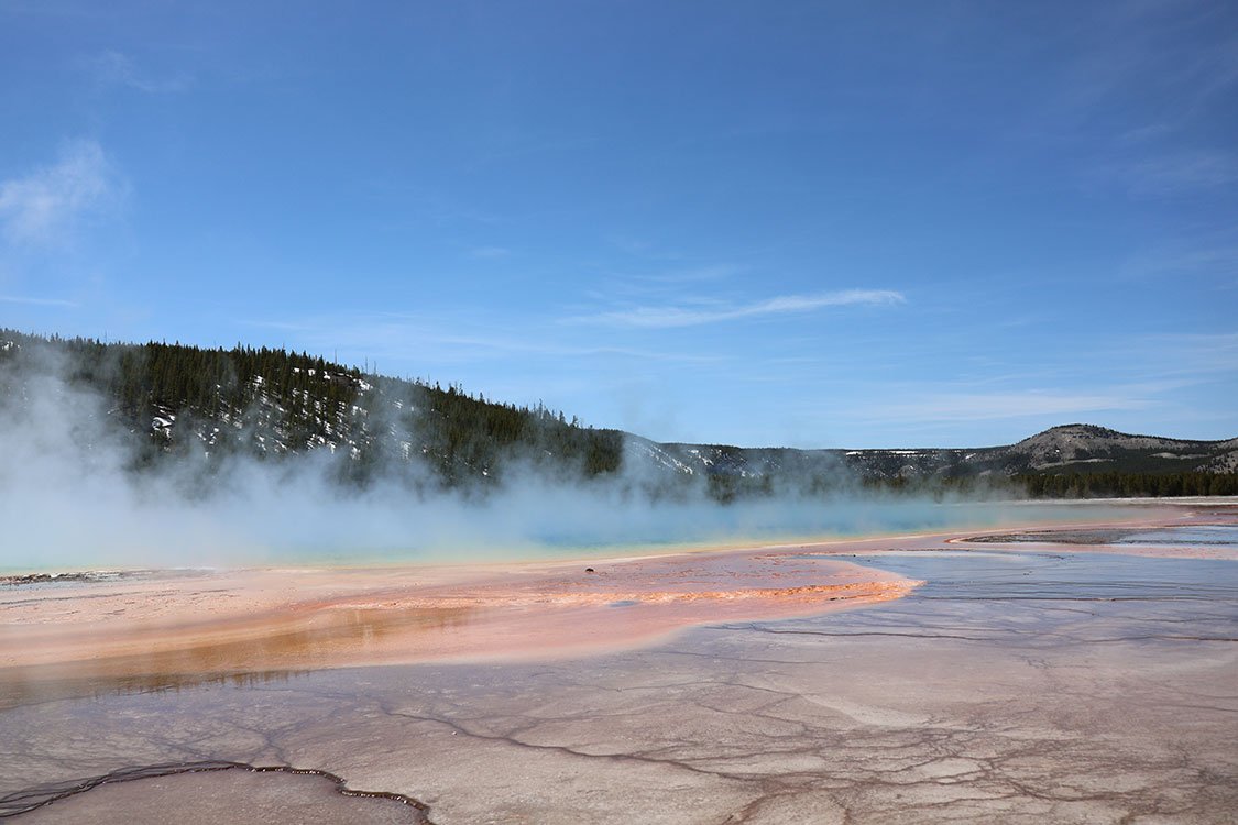In the summer months, it’s a quick and scenic drive from Grand Teton National Park to Yellowstone National Park, with the parks connected directly by the John D. Rockefeller Jr. Memorial Parkway. However, because our visit came before Memorial Day, that route was still closed for the season. Instead, our journey took us on a longer, but equally beautiful, drive through a mountain pass in Wyoming, briefly into Idaho, then up through Montana before re-entering Wyoming via the West Entrance to Yellowstone in West Yellowstone.