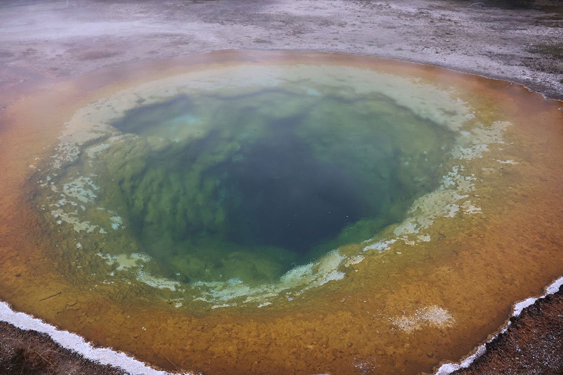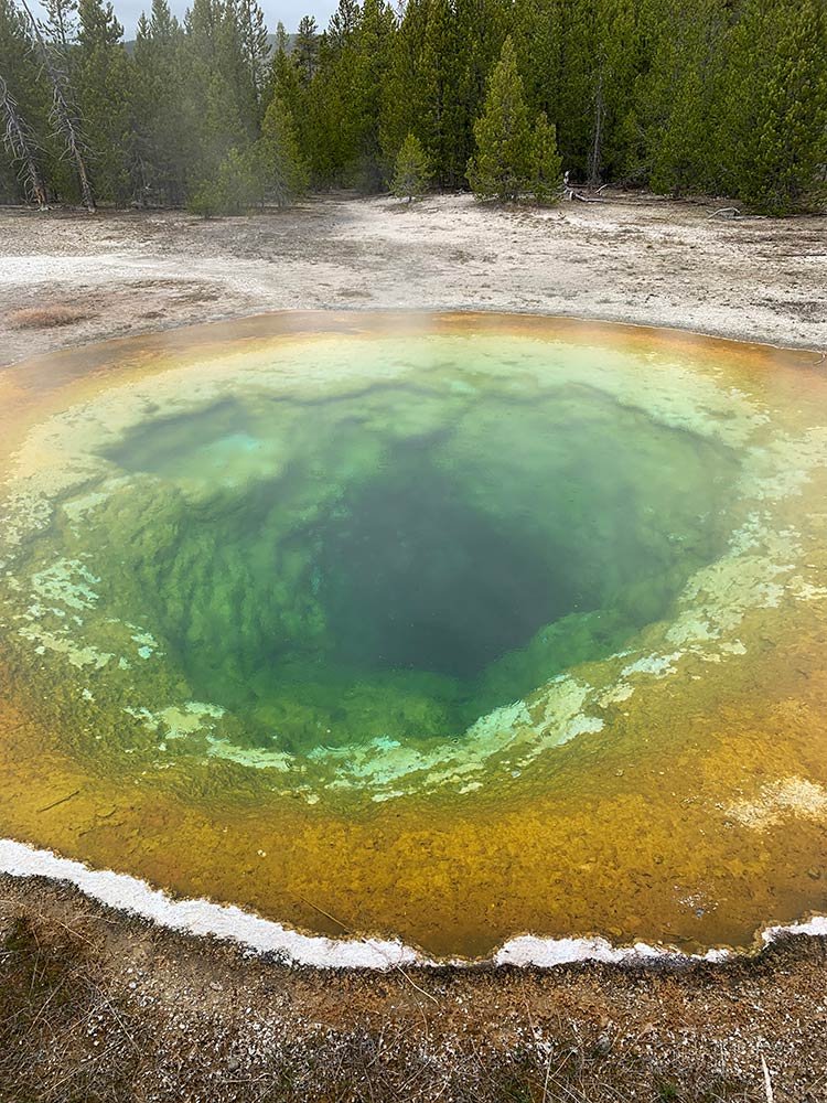 Today, I ventured farther than I had on earlier walks through the Upper Geyser Basin, one of Yellowstone’s most iconic geothermal areas. The reward? A breathtaking view of the Morning Glory Pool, one of the park’s most colorful and famous hot spring pools. True to its name, it looked just like a blooming morning glory flower with vibrant blues and greens glowing in the cool morning light. It was, without a doubt, one of the most beautiful sights I’ve seen in the park.