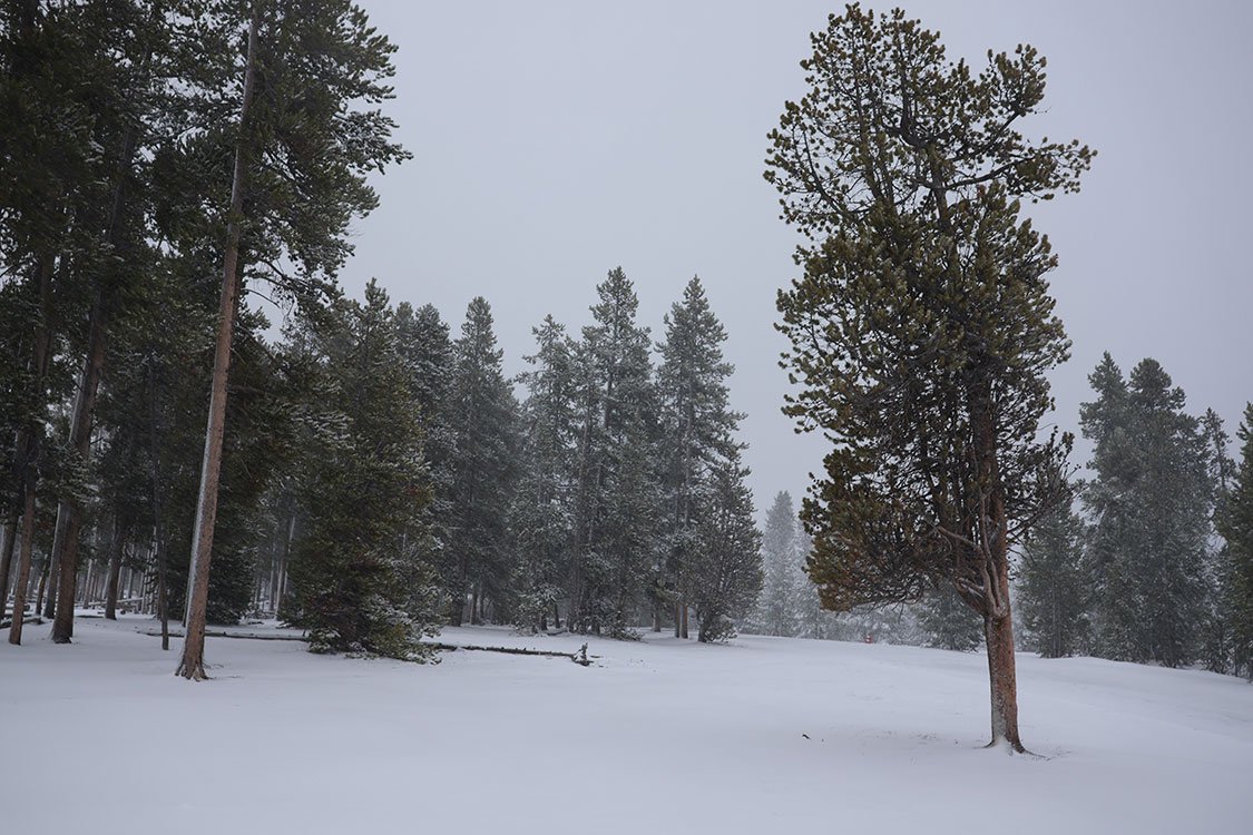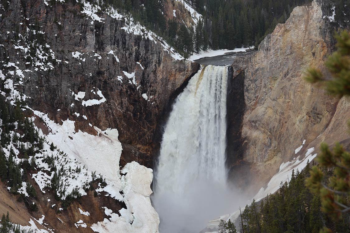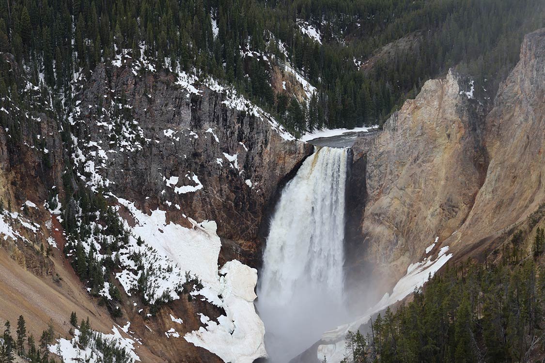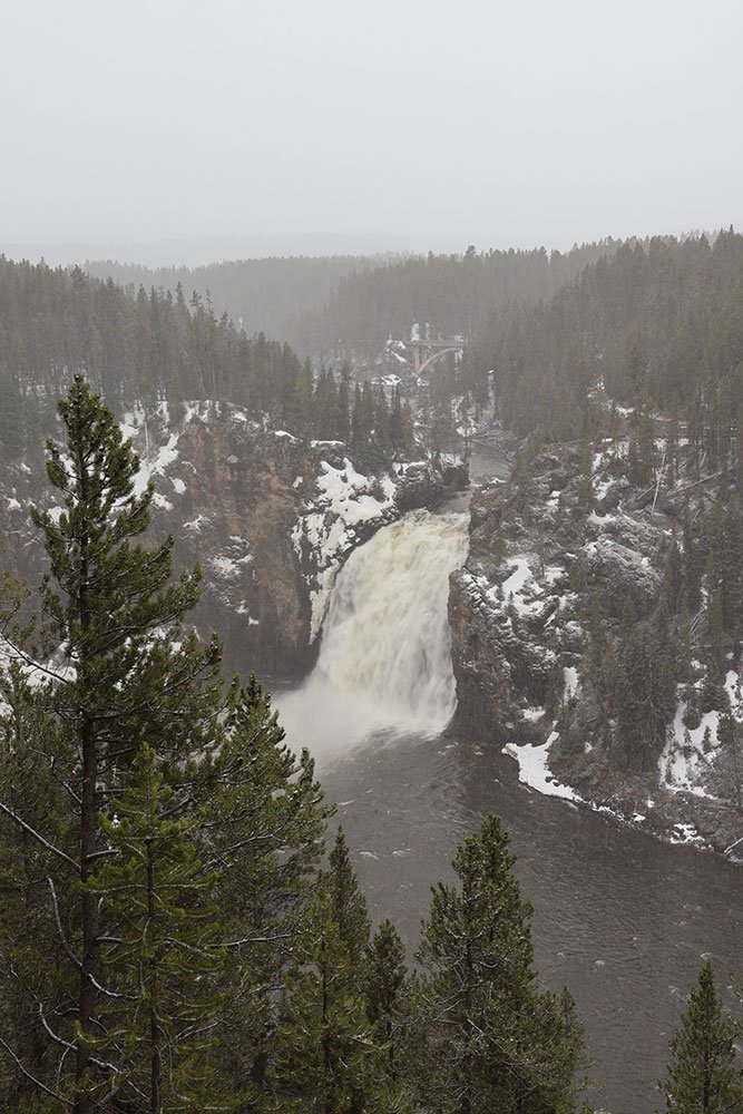 As I began the descent toward the overlook at the top of the Lower Falls of the Yellowstone River, light snow started to fall and it didn’t let up. It snowed steadily for the rest of the afternoon, transforming the landscape into a quiet, white wonderland. The unexpected spring snowfall in Yellowstone added a nice touch to an already unforgettable day of exploration.