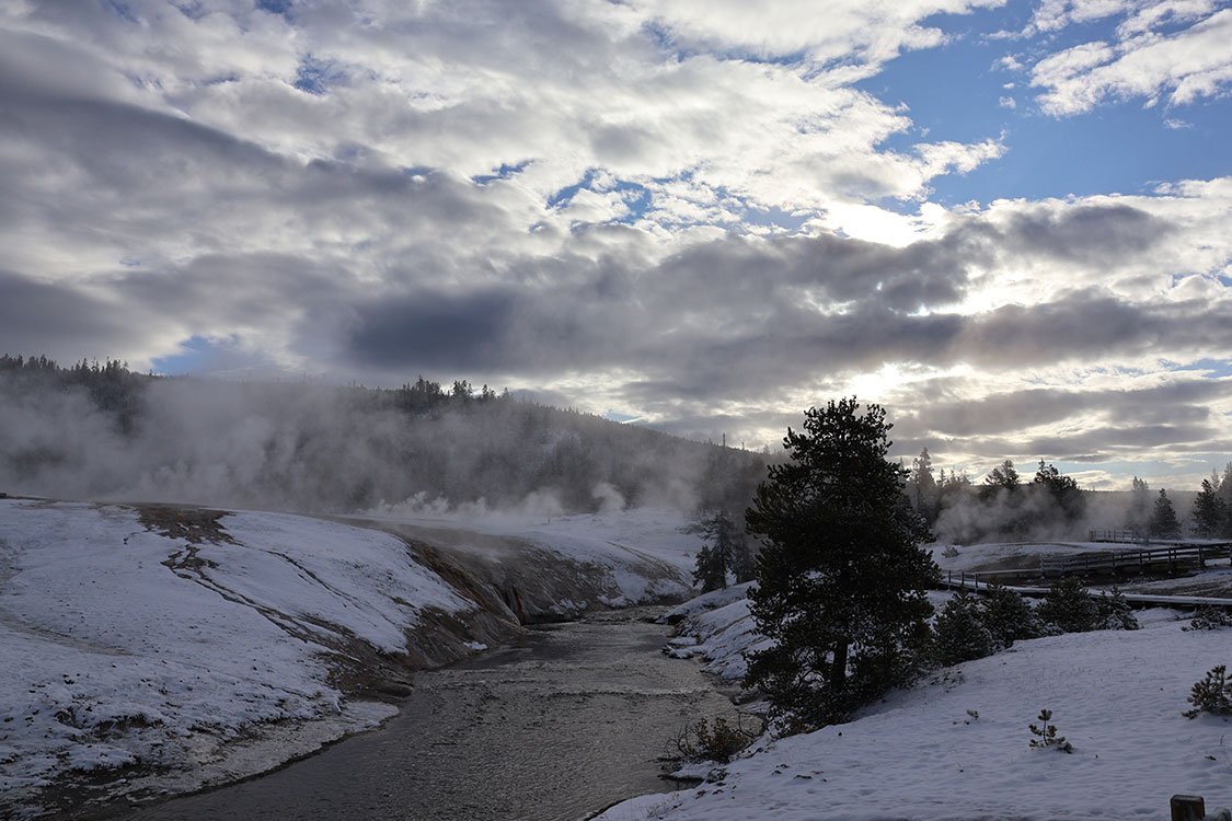 Everyone should have the chance to experience Yellowstone National Park in winter. I was lucky enough to do just that, even though it was early May. I stepped out for an early morning walk and was greeted by several inches of fresh snow, turning the landscape into a winter wonderland in Spring. The trees, trails, and hillsides glistened under a pristine white blanket, giving Yellowstone a whole new kind of shine.