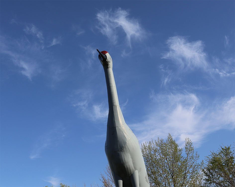 While not as towering as the World’s Largest Holstein Cow or as prominently perched, the small town of Steele, North Dakota is home to a unique roadside attraction the World’s Largest Sandhill Crane, affectionately named Sandy. Standing approximately 40 feet tall, Sandy was built to honor the region’s connection to birdwatching and the migratory patterns of sandhill cranes that pass through the area.