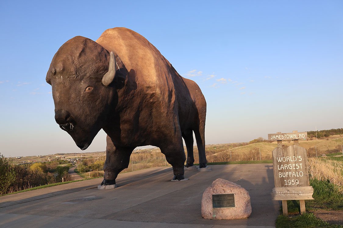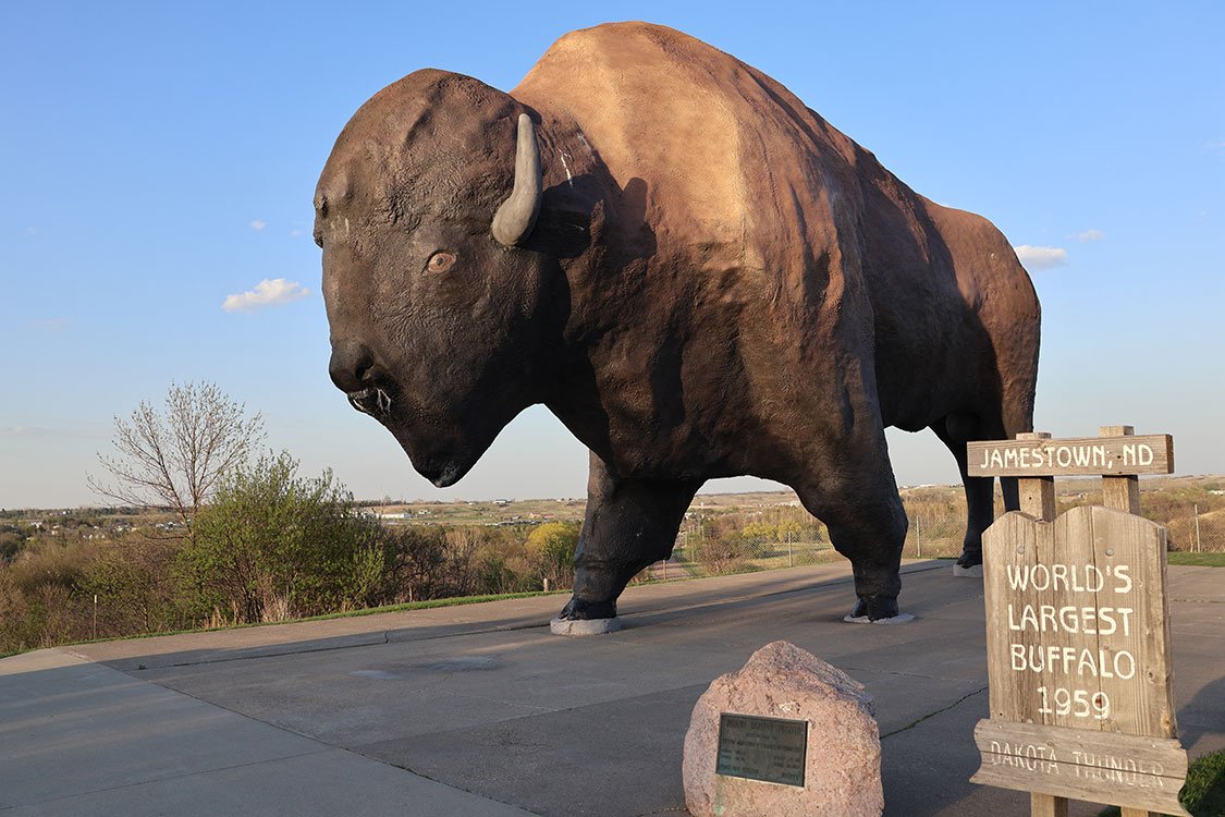 After checking into our hotel in Jamestown, North Dakota, we capped off the day with a visit to one of the state’s most iconic roadside attractions, the World’s Largest Buffalo, affectionately known as Dakota Thunder.