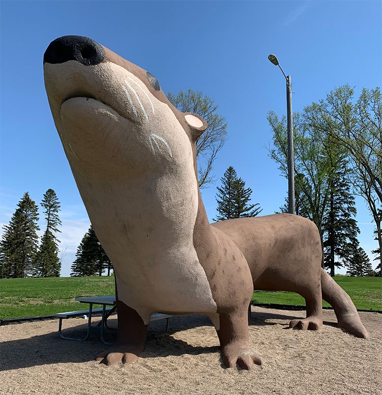 Sometimes the best roadside stops are the ones you didn’t plan. While driving along I-94, we saw a sign for the World's Largest Otter and decided to make a quick detour to Fergus Falls, Minnesota. Just ten minutes off the interstate, we found Otto the Otter standing tall in Grotto Park, overlooking a peaceful lake where geese floated by. The spontaneous stop was well worth it and added another fun entry to our list of giant roadside attractions.