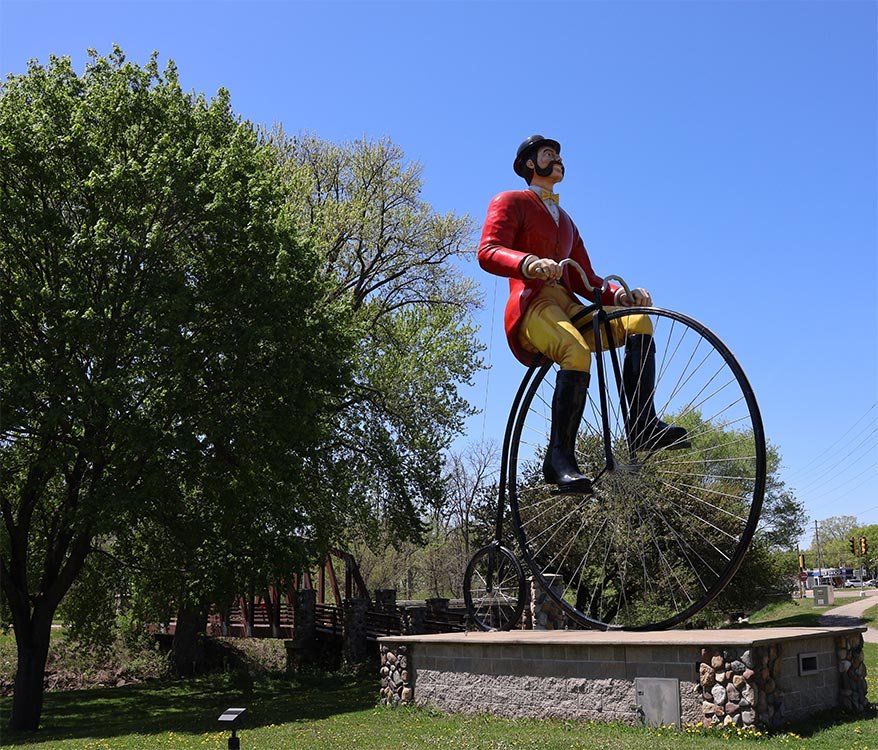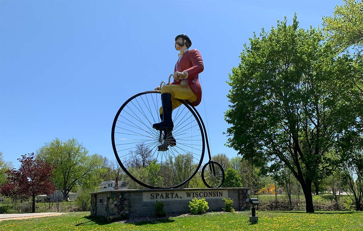 Nicknamed Ben, this towering cyclist sculpture sits atop a giant 1890s-era bicycle and stands an impressive 32 feet tall. Dressed in a colorful outfit, Ben greets visitors entering Sparta. If you're traveling through western Wisconsin or following I-90, this massive tribute to biking culture is a must-see stop.